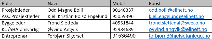 Spørsmål om planer og gjennomføring kan rettes til følgende:
